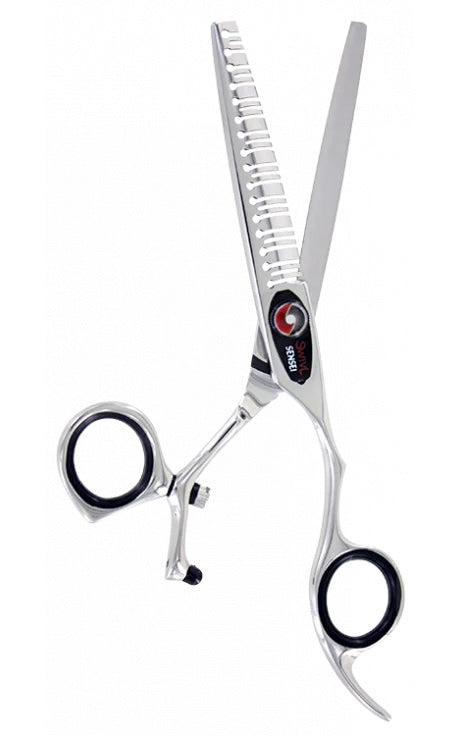 The Swivel Thumb Shear helps to prevent Carpel Tunnel syndrome that many hairstylist suffer from due to repetitive motion in an non ergonomically correct cutting position.